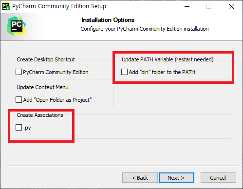 .py를 연결해주는 옵션과 환경패스에 자동 설정해주는 옵션을 체크하자.