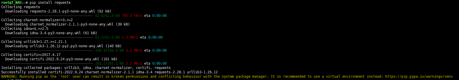 작성자의 경우 최초 오류가 발생했던 requests 모듈을 설치해봤다.