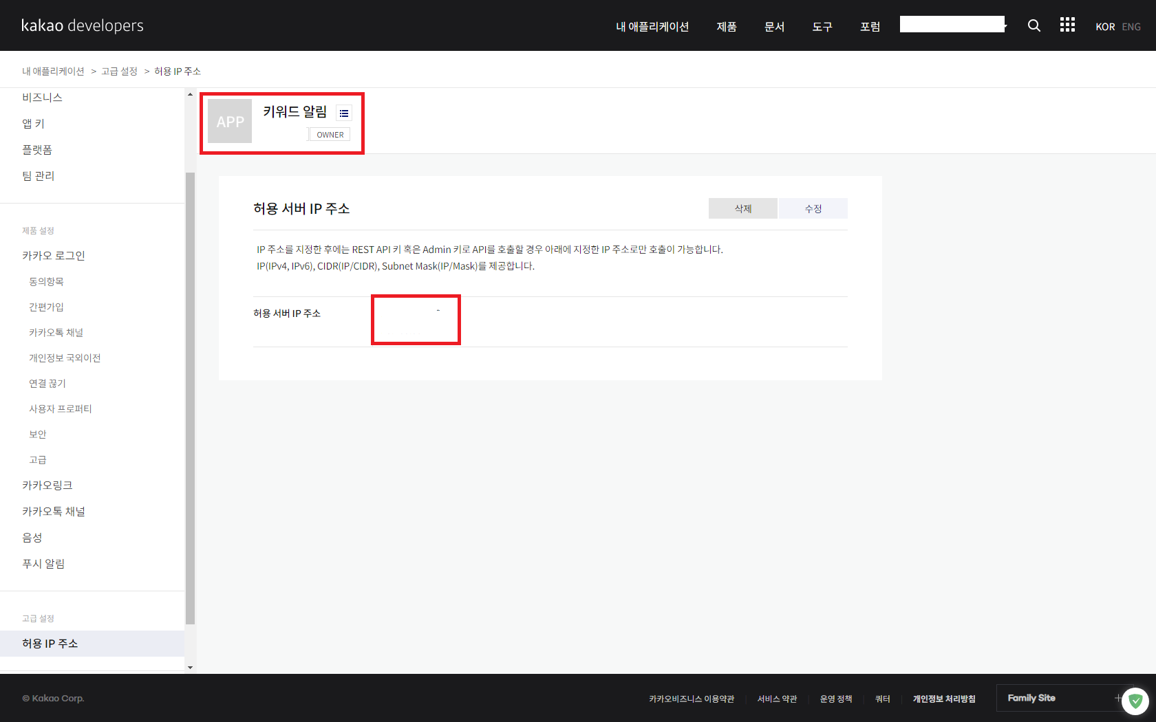 ip 관련 오류가 발생할 경우에는 아래처럼 어플리케이션에서 ip를 허용해야한다.