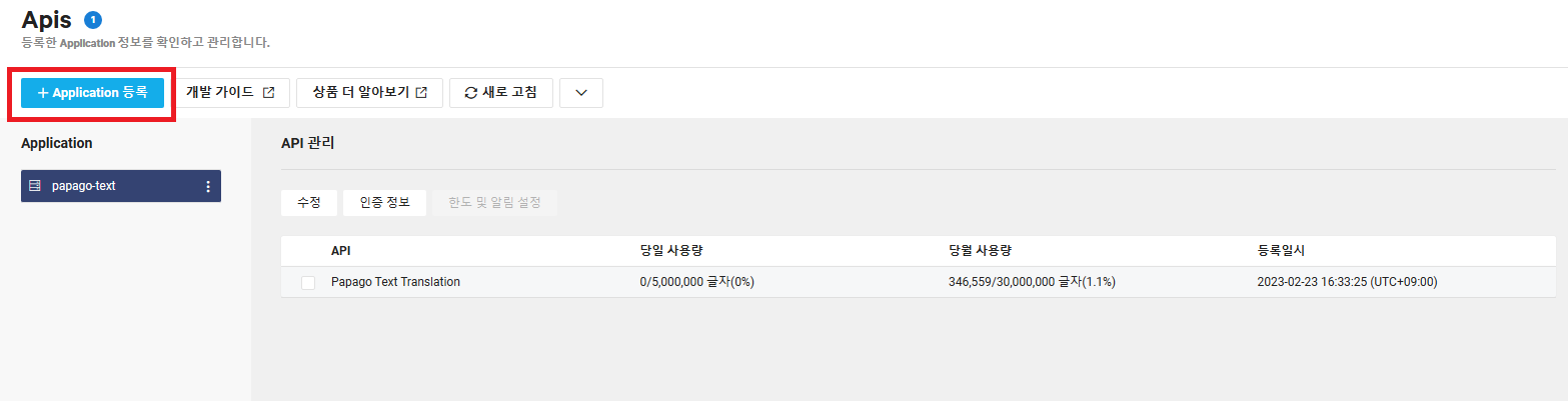 유의해야할 점은 파파고 API에 텍스트 번역으로 등록을 하였다면