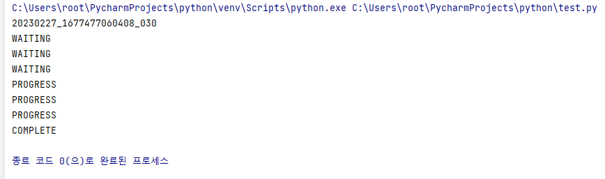 상태값이 COMPLETE 가 되면 번역된 문서를 다운로드 한 후 프로그램은 종료한다.