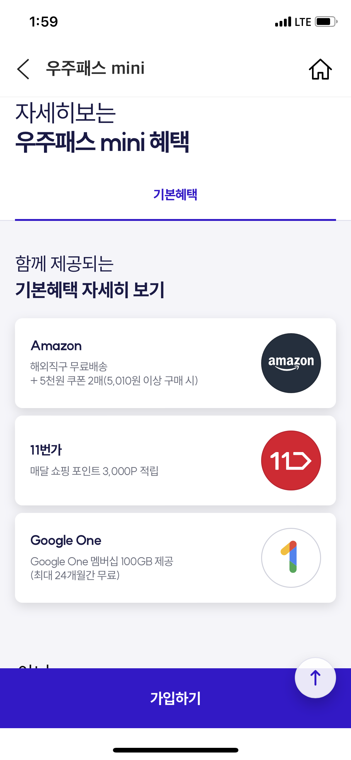 - 11마존 무료배송 + 1만원 할인, 11번가 매달 3천 포인트 지급 및 5천원 쿠폰, 구글 드라이브 100G, 추가혜택 (타 서비스 구독권)