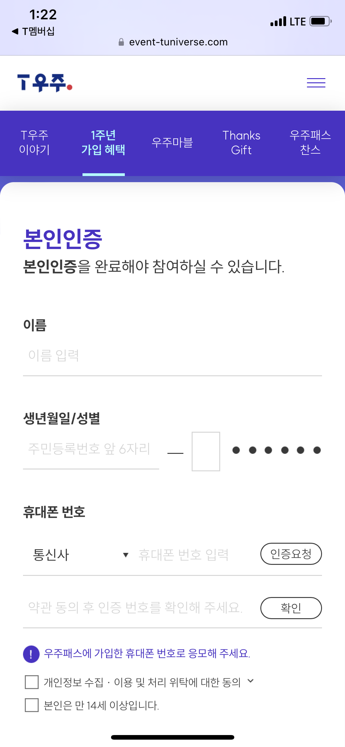 구독하고자 하는 우주패스 구독권을 선택했다면 인증을 해야한다.