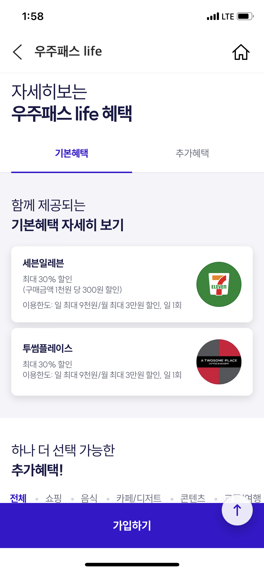 - 세븐일레븐 30% 할인, 투썸플레이스 30% 할인 + 추가 혜택 (타 서비스 구독권)