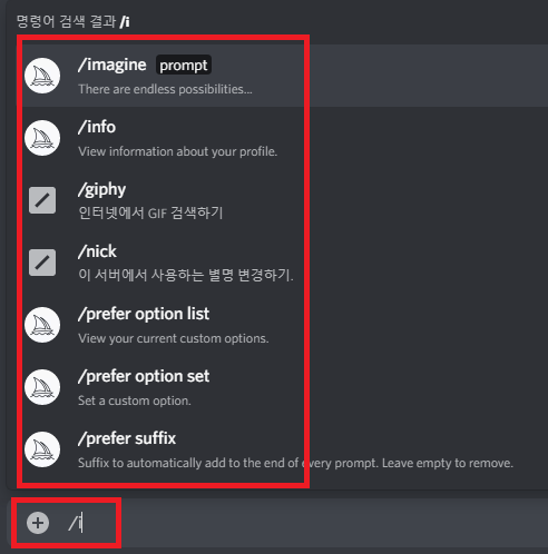 그 중 /imagin을 선택해 prompt를 활성화하자.