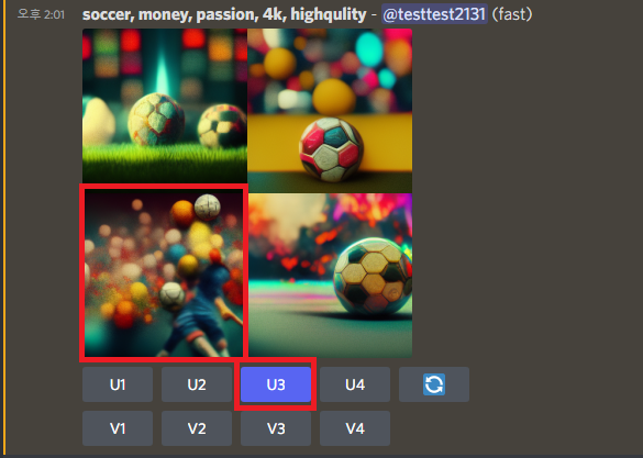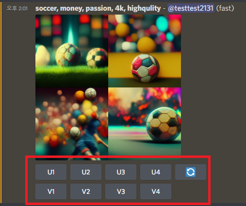 (메뉴상 U는 Upscale, V는 Variation 약자라고 한다)