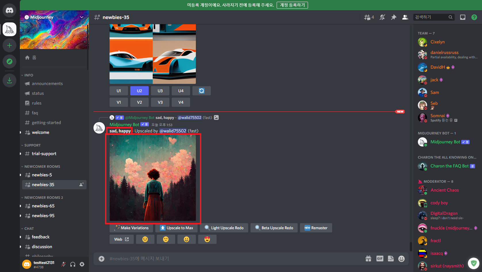 작성자의 경우 3번 작품이 마음에 들어 업스케일링을 요청했다.