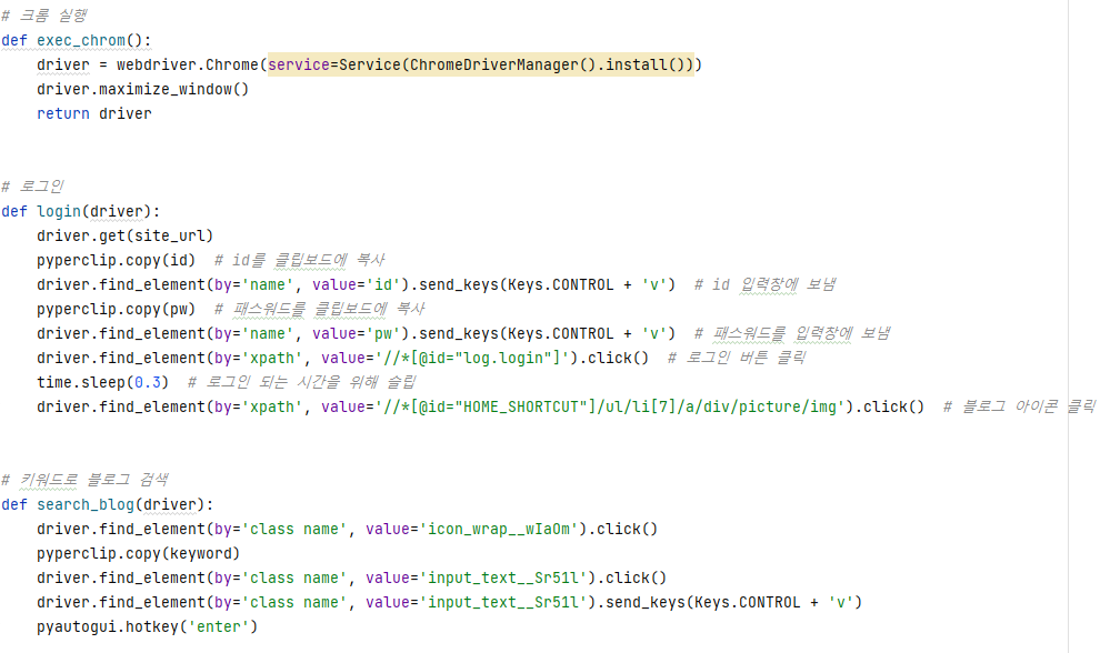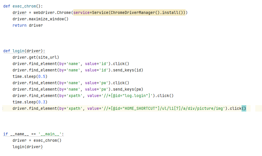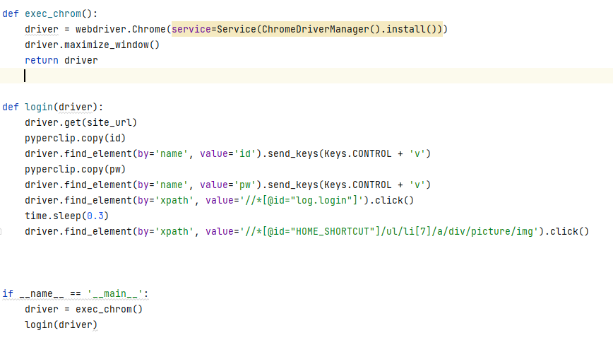 time.sleep(0.5) # 로그인 되는 시간을 위해 슬립