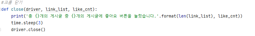 print('총 {}개의 게시글 중 {}개의 게시글에 좋아요 버튼을 눌렀습니다.'.format(len(link_list), like_cnt))