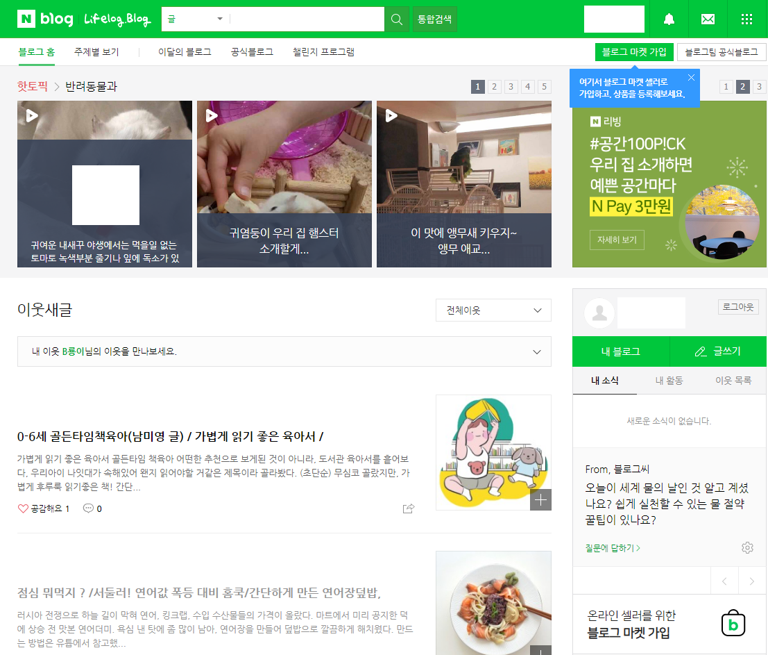 • 네이버 블로그 이웃글 확인