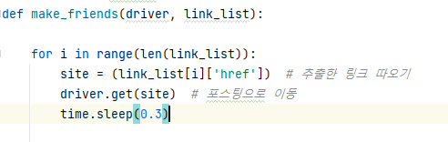 반복문 처리를 해 차례대로 이웃들의 블로그를 방문했다.
