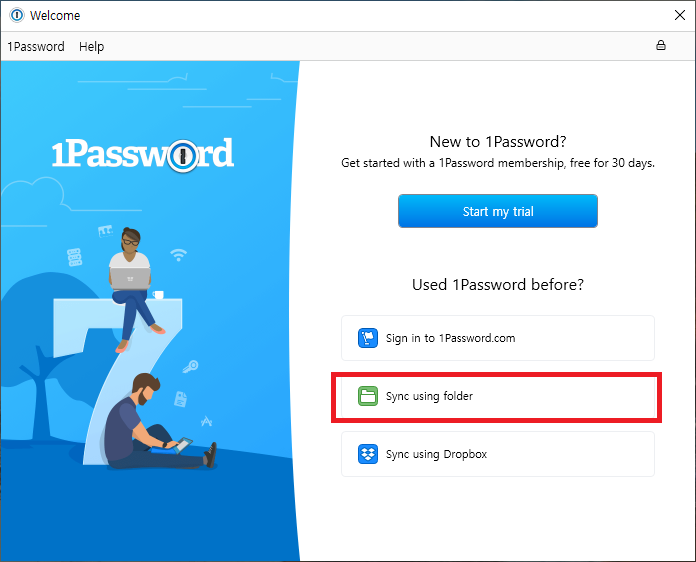 최초 사용자면 'I am new to 1Password'를 눌러 정보를 저장할 위치를 설정한다.