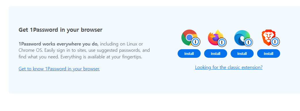 다섯번째, 1password는 단축키나 확장프로그램을 통해 손쉬운 로그인(사용)이 가능하다.