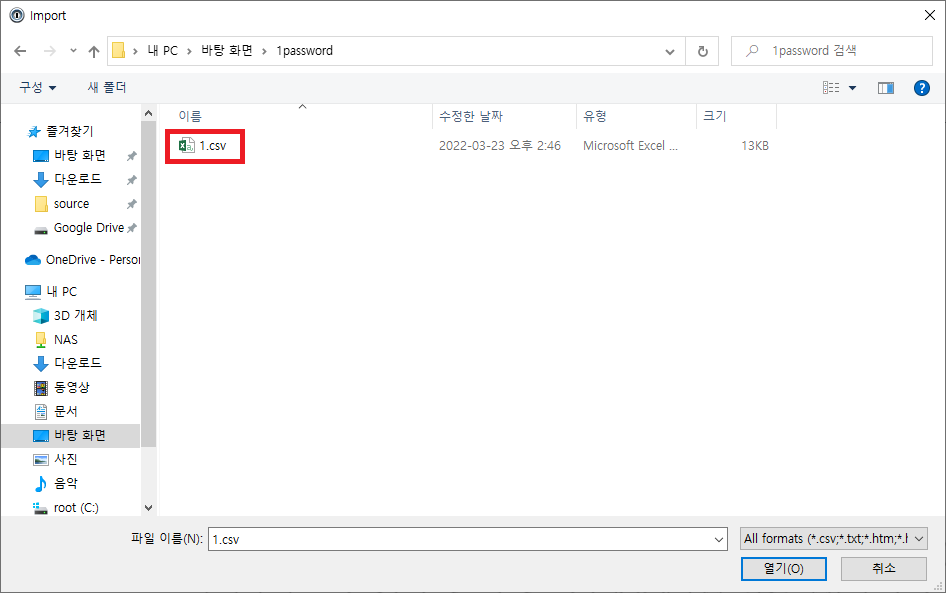 무료 버젼 1password의 아이디,패스워드, 사이트 정보를 변환하면 무료지만