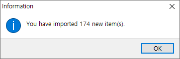 필자는 총 174개의 항목을 관리하고 있고 모두 정상적으로 입력되었다.