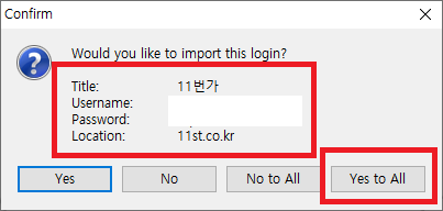 그 다음부터 항목들은 모두 입력 대상이므로 Yes to All 버튼을 눌러 입력한다.